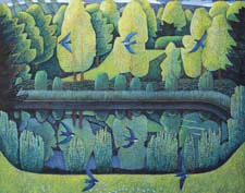 Summer Pond with Swallows